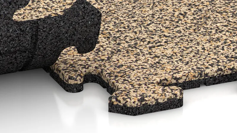 As with wood and other materials, rubber granulate tiles can undergo slight dimensional changes. Due to temperature fluctuations or temporary moisture absorption, the material may expand or contract slightly – a natural effect.