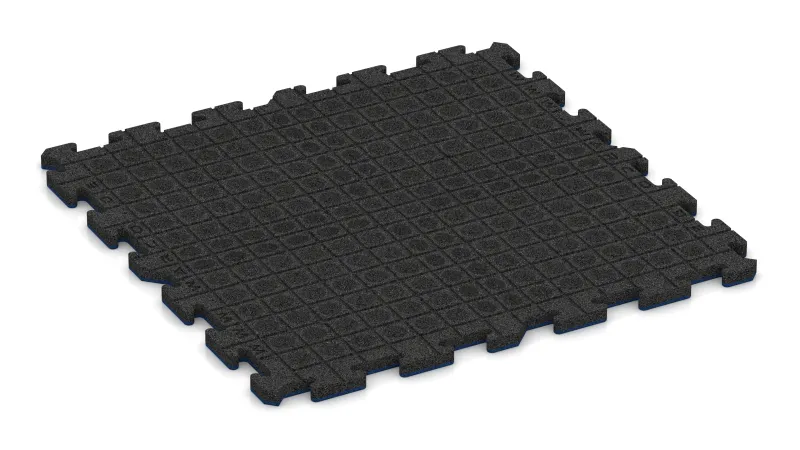 The mats are made of PU-bonded rubber granulate and are available in thicknesses of 3, 4 or 5 cm. They reliably absorb impacts, reduce vibrations and dampen noise. Joints, tendons and ligaments are noticeably relieved, while the subfloor is effectively protected.