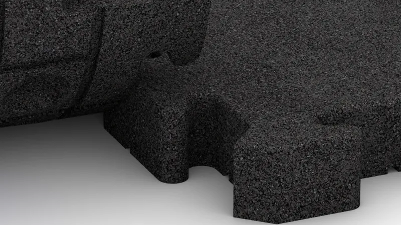 All-round puzzle interlock. The tiles are connected by an all-round moulded puzzle interlock with a slight chamfer. When laid floating, the teeth fit precisely into each other, creating a stable and dimensionally secure surface. Cutting edge pieces is straightforward with a jigsaw or circular saw.