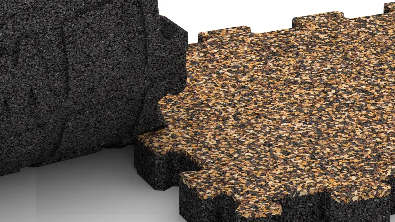 As with wood and other materials, rubber granulate tiles can undergo slight dimensional changes. Due to temperature fluctuations or temporary moisture absorption, the material may expand or contract slightly – a natural effect.