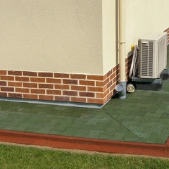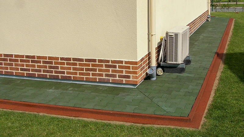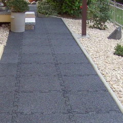 Rubber paving slabs are especially low-maintenance and almost maintenance-free. Coarse dirt can easily be removed with a broom or garden hose. As the slabs are generally water-permeable, puddles rarely form and fine dirt is usually washed away by rain. In addition, rubber granulate does not encourage plant growth, and ants or mice do not settle underneath, as the slabs do not provide protection from moisture.