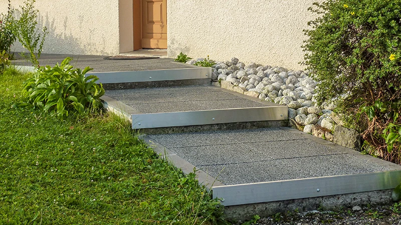 For individual stepping stones in the lawn, it is enough to cut out the turf at the desired spot, make the soil level and stable, and place the slab. This creates a stable and clean step.