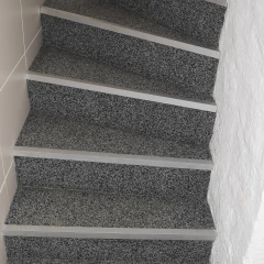 Finally, a metal or plastic edge protection profile is glued to the front edge of each step. This protects the edge from excessive wear and conceals the joint between the tread and riser.